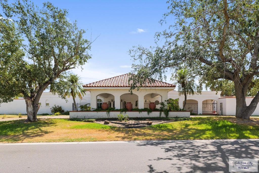 One of the most prestigious home's in Rancho Viejo. Old world solid construction on the resaca with fabulous details. Too many details to explain. Main house offers huge principle suite 2 large bedrooms, 3 spacious baths, 2 half baths, large dining room, large kitchen w/breakfast area, very large living room, incredible woodwork throughout and exquisite elevated ceiling with inset detailed work, wood floors, tile floors, carpet, lg. laundry rm w/sink, pantry, wet bar with ice maker, dishwasher, refrigerator, sink, wonderful entertaining home. + Detached guest rooms with baths, so much concrete slab to accommodate oversized patios, walkways, (6 car garage 2,268 sq,ft plus tons of storage) and plenty of sitting areas throughout the grounds. Covered tiled back patios connect the detached guest rooms, fountain in back yard, large pool w/ cool decking & outdoor half bath. retaining wall, dock, Generator/ Home was built in 1985. Incredible Spacious feel throughout. Truly a rare find!