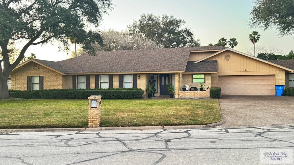Nestled in the desirable Palm Valley community, home of the Harlingen Country Club, this beautiful residence offers a spacious and inviting layout. The generous living room seamlessly connects to the den and formal dining area, creating a perfect space for entertaining. Stylish wood-look tile flooring, faux wood blinds, and a versatile office or study enhance the home's appeal. A wet bar is conveniently located off the dining room. The well-appointed kitchen features quartz countertops, a center island, two pantries, and a cozy breakfast nook, with all kitchen appliances included in the sale. Off the garage, you'll find a flexible space ideal for a maid's quarters, exercise room, or additional bedroom with a full bath. The covered patio extends to an open patio, providing a great outdoor retreat. The property is complemented by mature trees and a sprinkler system for easy maintenance. House did not flood.