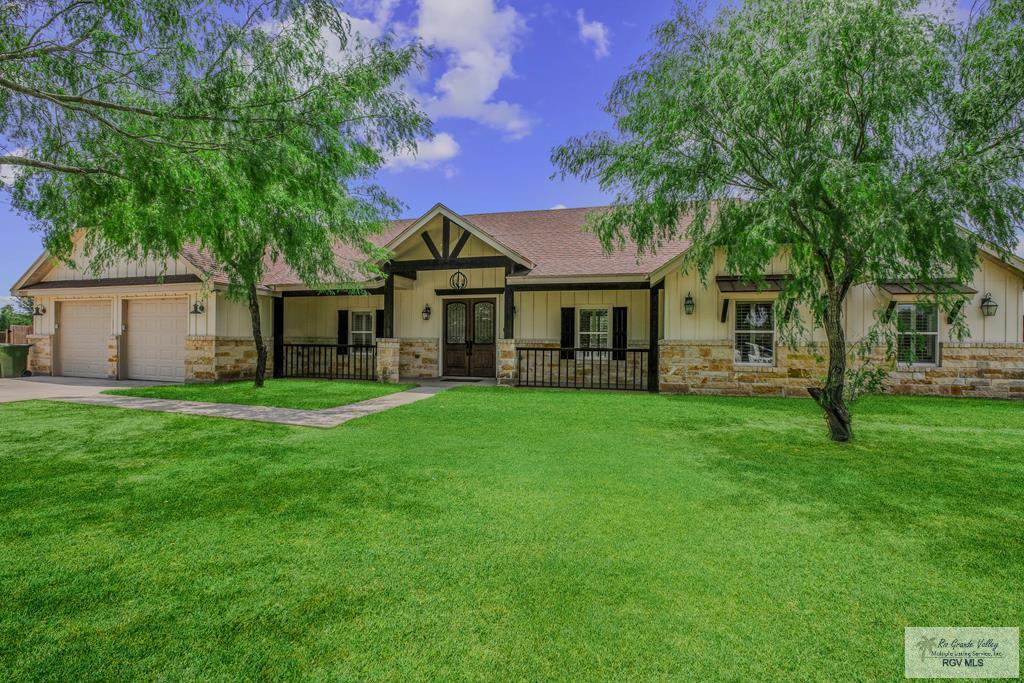 Welcome to this stunning stucco and stone home nestled on nearly an acre in San Benito, TX! Built in 2021, this spacious property offers 2,982 living sqft with 3 bedrooms, 3 full baths, a dedicated office, and an impressive theatre room—perfect for working from home and entertaining. Enjoy a serene resaca view right from your backyard, providing both privacy and peaceful scenery. With a 2-car garage, open layout, and high-end finishes throughout, this home combines comfort, functionality, and style in a beautifully landscaped setting. Don't miss the opportunity to own this unique property with space to grow and a view you'll love every day!