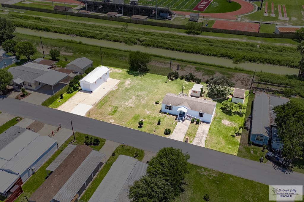 Well-maintained 3-bedroom, 2-bath home in 55+ Palmera Estates, situated on 4 total lots (nearly half an acre)—offering exceptional space, privacy, and versatility. Split-bedroom layout, spacious living and dining areas, and a large kitchen with breakfast bar, black appliances, and ample cabinetry. Separate laundry room with exterior access. The oversized detached garage accommodates a large vehicle or RV and includes a full RV hookup. Two sheds—one finished with a shower and laundry—provide additional utility and storage. Concrete driveways, well-kept landscaping, and plenty of outdoor space for gardening, entertaining, or future additions. HOA is $100 per lot annually ($400/year total). Located in a peaceful 55+ community. Ideal for full-time residents, Winter Texans, or anyone seeking a low-maintenance home with big amenities and room to breathe!
