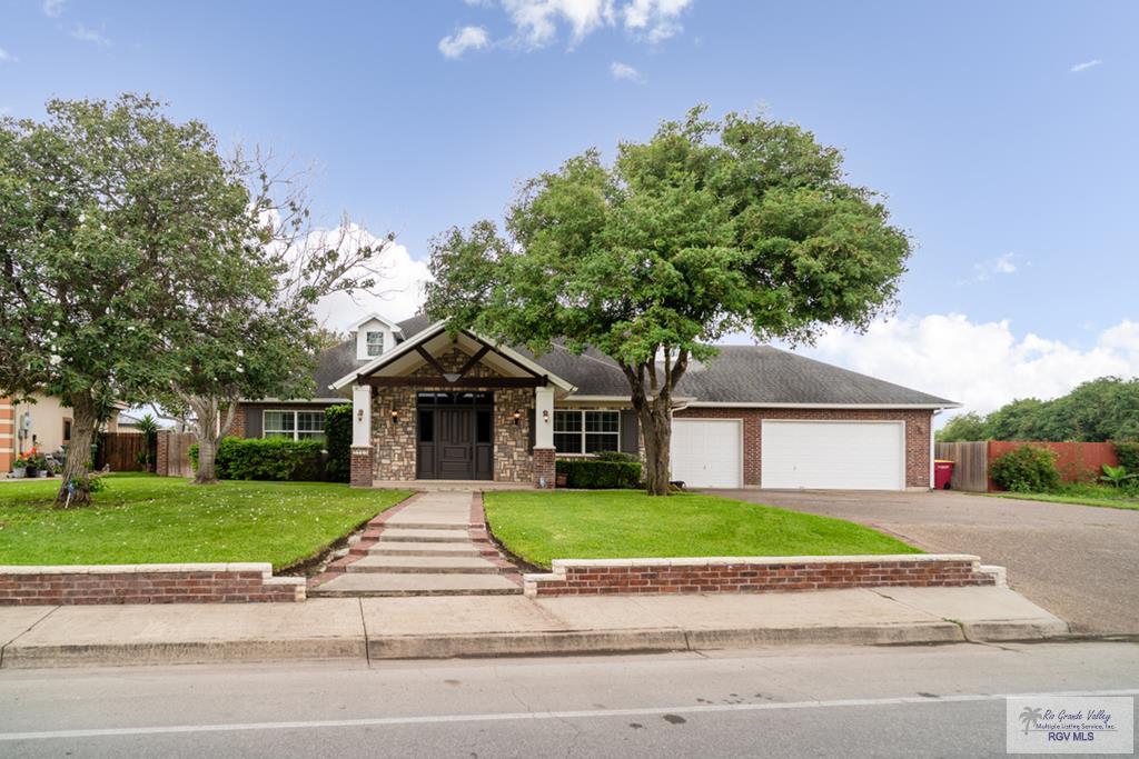 Welcome home to luxury living in The Woods and discover this exquisite custom home crafted by Pablo Martinez. Nestled on a generous 0.84-acre resaca lot, this residence boasts 4 bedrooms and 3.5 baths. Hardwood floors grace most of the interior, enhancing its warm charm. The kitchen is a culinary delight, adorned with granite counters, stainless steel appliances, convenient bar seating, and a central island complete with a built-in prep sink. Unwind in the opulent master suite, featuring a spacious bathroom adorned with his and hers vanities, a separate soaking tub, and a rejuvenating steam shower. Outside, a covered outdoor living space invites relaxation as you overlook the lush yard and tranquil resaca. Additional highlights include a three-car garage and a sprinkler system fed by the resaca, ensuring effortless maintenance and enjoyment of the picturesque surroundings. Bonus features include a whole house water filtration system and a reverse osmosis system.