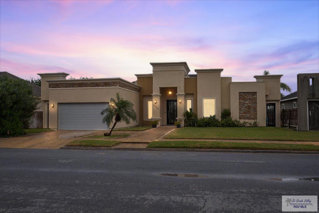 Stunning custom home in the prestigious Westlake Subdivision, built across two lots with access from two streets. With over 4,100 sq ft of living space and 6,120 sq ft total construction, this spacious one-story home offers 4 bedrooms, each with a private bath, plus a guest suite and half bath. The open-concept layout features high ceilings, tile flooring, and double sliding doors to the backyard. The kitchen boasts granite countertops, custom cabinetry, a large island, and a wet bar, perfect for entertaining. The primary suite includes a private office, backyard access, a luxurious bath with double vanities, separate shower, and a huge walk-in closet. Extras include maid's quarters, covered patio, barbecue area, and a detached party pavilion built in 2016 with 1,104 sq ft of living area and a 674 sq ft covered patio — ideal for gatherings. A concrete privacy fence encloses the backyard, with space for a pool if desired.