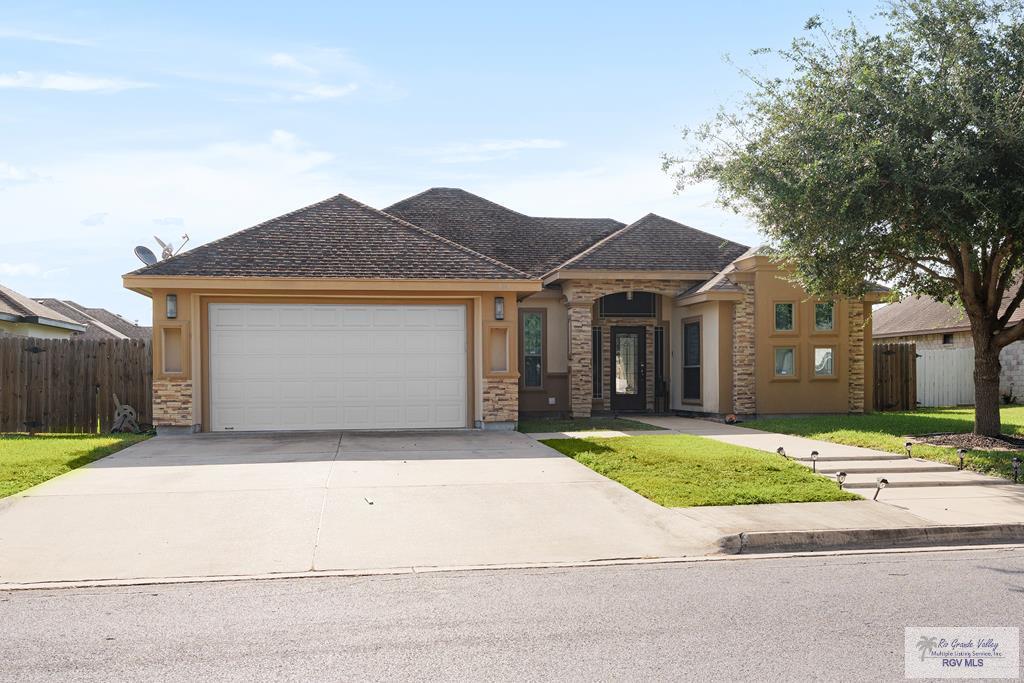Well-designed 3-bedroom, 2-bathroom home in Brownsville offering comfort, style, & convenience along with Los Fresnos ISD schools. Inside, the open floor plan places the living room at the center of the home, creating a natural flow into the dining & kitchen areas. The kitchen is a highlight with abundant cabinetry, granite countertops, & plenty of space for meal prep or entertaining. Tile flooring runs throughout for easy maintenance & a clean look. The primary suite provides outdoor access, while the bathroom features a double vanity, soaking tub with jacuzzi jets, separate shower, & walk-in closet. Step outside to a fully fenced yard with a covered back patio & detached gazebo area—perfect for gatherings or quiet evenings. Conveniently located minutes from the interstate, shopping, and dining, with South Padre Island and SpaceX only a short drive away. This home blends comfort with location, do not it pass you by.