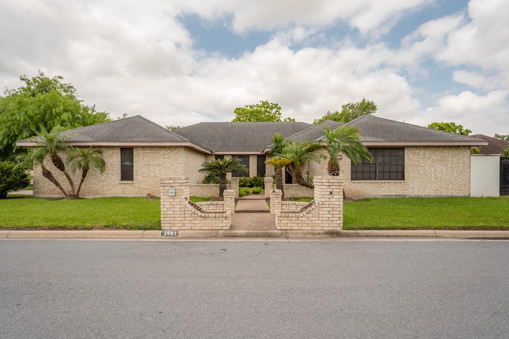 Price Reduced! This home has a spacious open layout with three large bedrooms each with their personal bathrooms. The bedrooms are in their own wing of the house with a nicely groomed side yard. There are 2 additional baths, one indoors for guests & one outdoors. There is a small room outside with a wall unit that can be used for storage. The office area is just off the living room, as is the wet bar. The large kitchen island has granite countertops with an island with extra storage. The flooring is low maintenance with wood and travertine flooring throughout. The exterior has a sprinkler system, two separate yards, and a large covered patio. Additional features are a fireplace in the living area, a breakfast area, recessed lighting, and under cabinet lighting in kitchen. Place this well located house on your list and schedule a showing today.