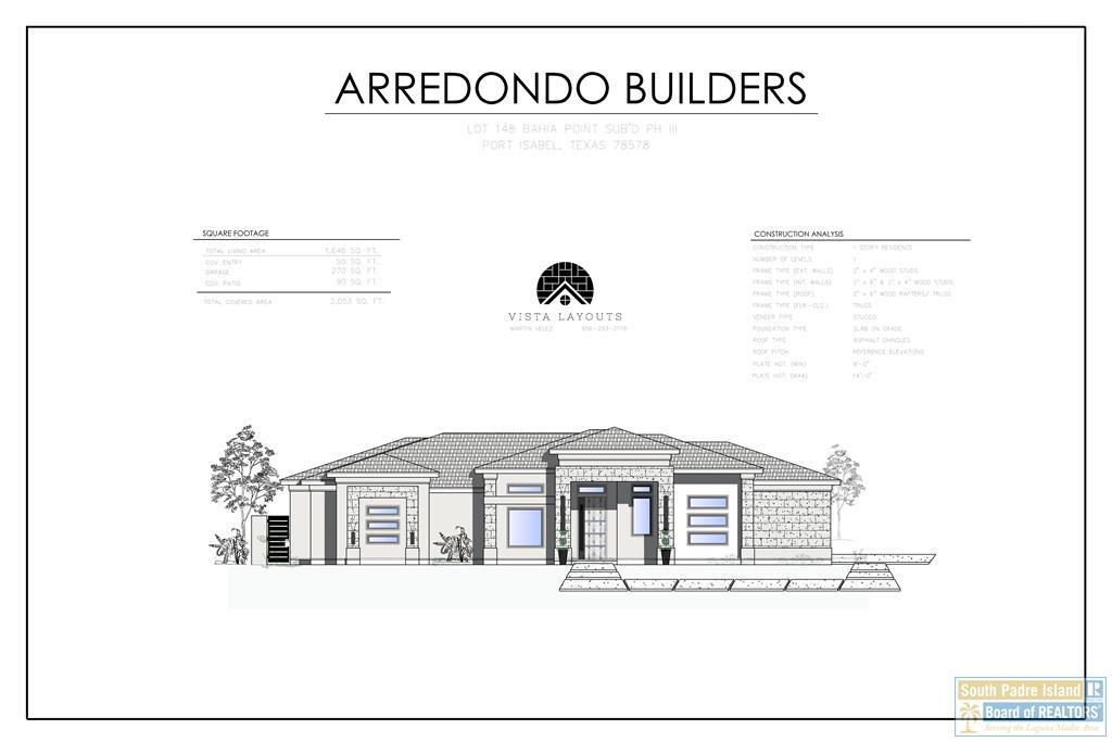 New construction in the Bahia Point Subdivision Phase III. "ZERO" down payment available! Another beautiful home by the custom builder, Ricardo Arredondo of Arredondo Builders. 1646 Square Foot open concept, spacious with tile flooring, granite countertops, tiled showers, soaking tub and raised ceilings. Floor plan attached. Just getting started so plenty of time to pick out colors. Located on a corner lot.