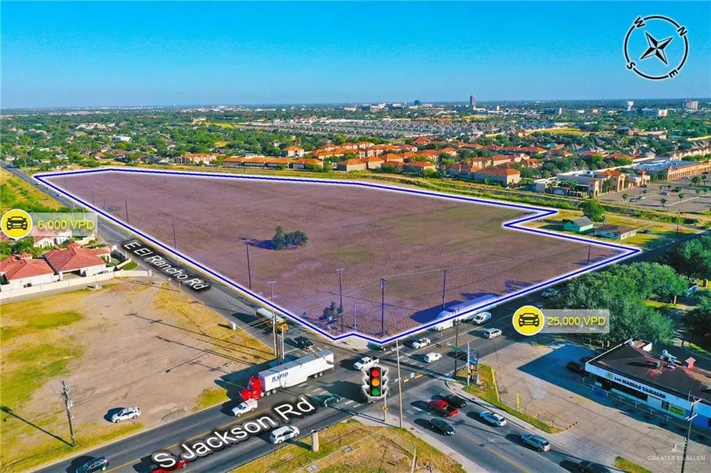 14.6 acres of prime development land situated at the hard corner of E. El Rancho Rd and Jackson Rd in the thriving area of south McAllen. This property has over 400 feet of frontage along Jackson which sees over 25,000 vehicles per day making it highly sought after for retail users. In addition, this property has strategic proximity to key landmarks, including Simon Properties La Plaza Mall, McAllen Country Club, McAllen International Airport, and South Texas Health System, as well as many nearby shopping centers and the Pharr and Hidalgo International Bridge.