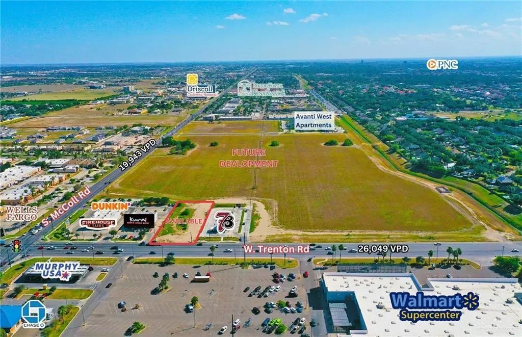 Coldwell Banker Commercial Rio Grande Valley presents a remarkable opportunity to ground lease or purchase this 0.86-acre pad site in a prime, high-visibility location. Positioned near a Walmart Supercenter, this site benets from substantial foot trafc and easy access. Located close to Edinburg's medical corridor and major healthcare facilities, it ensures a steady ow of visitors, making it ideal for businesses across diverse industries. With Edinburg's growth trajectory, this pad site offers excellent potential for long-term value appreciation.