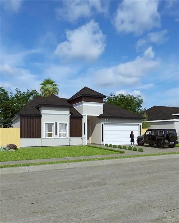 Welcome to this stunning new construction at Mount Zion Estates in Alton, Texas! This beautiful home features 3 spacious bedrooms, 2 full bathrooms, and a convenient half bath for guests. The image shown is a render of the property. Enjoy premium finishes like tile flooring, quartz countertops, and a distinguished floorplan that enhances both style and functionality. With a built-in sprinkler system for easy maintenance, this home is move-in ready and centrally located. Call today to schedule your tour and make this dream home yours!