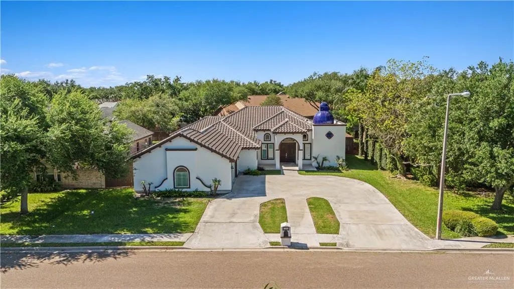 Located in Barcelona Subdivision, this Spanish style home was custom built with many fine details. From the tile roof, stucco walls, and tile cupola, this home has a true hacienda flavor. Open the double solid wood front doors to crisp white walls and tile flooring. Arches define the different open living areas. Distinctive decorative soaring ceilings and a wall of windows create a light airy feeling to the spacious home. Dark solid wood cabinetry, stainless appliances, and counters covered in white quartz are features to an open kitchen. A glass backsplash provides for additional light and garden views. Just off the living area is a half bath that opens to the backyard. The primary bedroom has a sitting area and spa like bath. The remaining bedrooms share a jack and jill bathroom. Not far from the bedrooms is a indoor laundry. A covered patio stretches across the home to overlook a large backyard. This is the perfect location to relax and watch the wild parakeets and even an eagle.