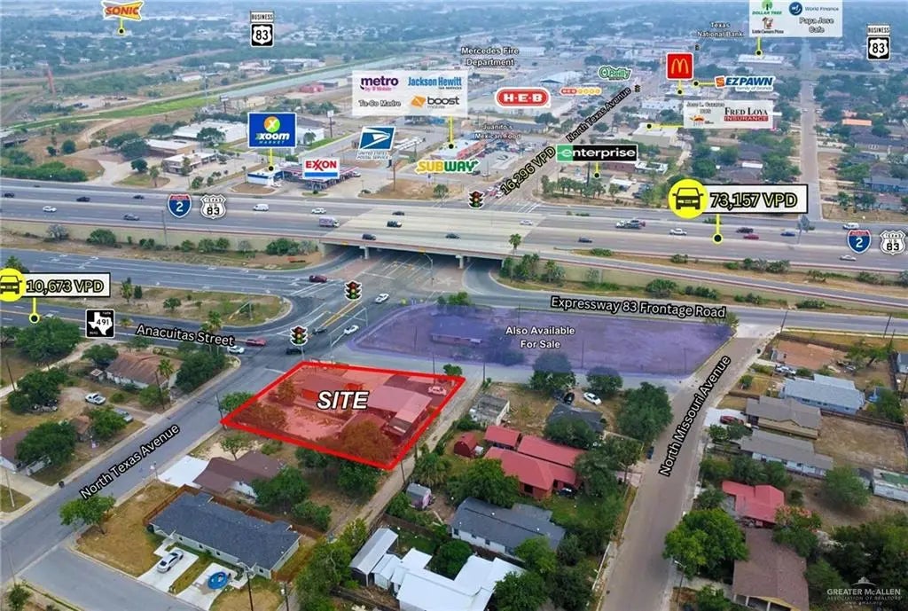 This excellent commercial property sits on a +/- 0.20 acre corner site at the corner of Expressway 83 (I-2), Texas Avenue, and FM 491, one of the busiest intersections in the area. Expressway 83 is major highway that connects travelers from Cameron County to Starr County. Texas Avenue is Mercedes’ main road and the city’s main commercial corridor, and FM 491 carries travelers to and from the Elsa/Edcouch area. The site is located on the North side of the expressway, at the entrance of the Rio Grande Valley livestock show and sees over 84,000 vehicles per day at the crux of its three roadway intersection. Due to the expanding nature of this area, commercial properties see a consistent value growth as commercial demand and viability continues to increase. This site is located in a strategic and ideal location in this upcoming trade area.