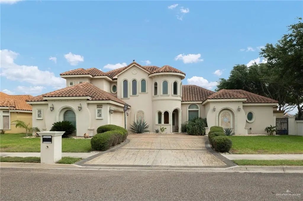 This is a beautiful elegant & well maintained residence in the gated community of Hacienda Las Fuentes. Inside, you'll find a spacious open-concept layout featuring gorgeous flooring, and elegant cantera columns throughout. The large kitchen is a chef’s dream, complete with granite countertops, a central island, a walk-in pantry, a commercial-grade refrigerator, and a beautiful stone sink. A stunning staircase with intricate iron scrollwork adds an artistic focal point and leads to the second-floor living area and bedrooms. The upstairs landing provides the perfect nook for a cozy sitting area or dedicated study space. The primary suite offers a double vanity, a separate shower, and a garden tub. A patio door opens directly to the backyard and pool, offering private outdoor access. You'll also enjoy a small office overlooking the pool. A covered patio opens to a pristine pool, surrounded by a low-maintenance rock yard.