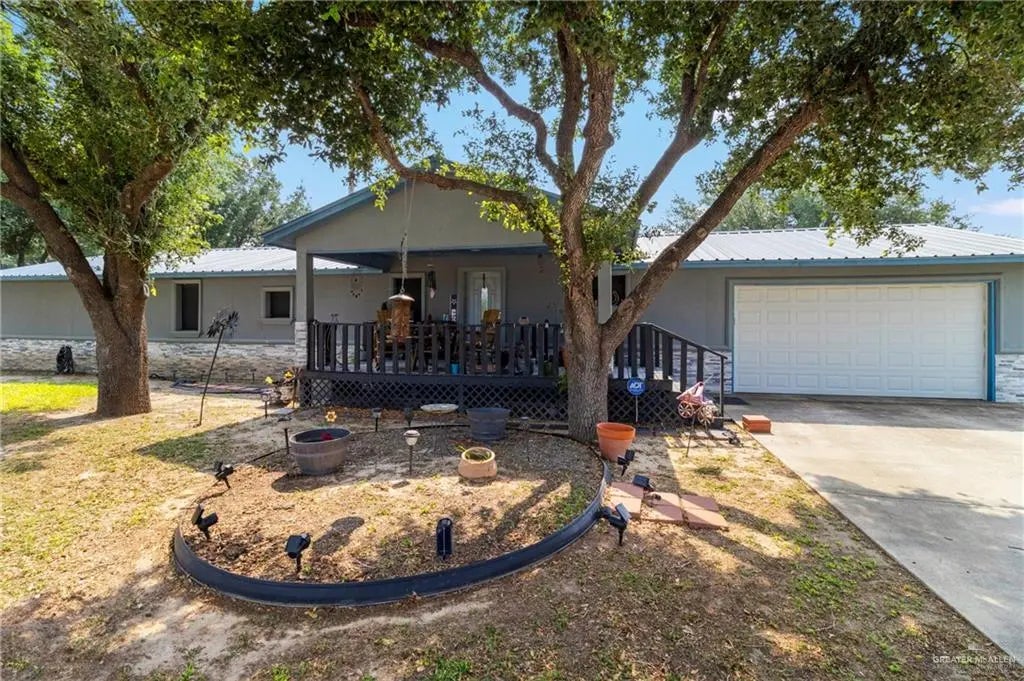 Charming Corner-Lot Home with Updated Interiors and Spacious Yard; Welcome to this inviting 4-bedroom, 2-bath, and an office, a home nestled on a generous corner lot, fully fenced for added privacy and security. This residence blends cozy charm with modern upgrades, featuring a beautifully remodeled kitchen equipped with butcher block-style cabinets, stainless steel gas range, and open shelving that adds a stylish, functional touch. The light wood laminate flooring throughout the living area enhances the open-concept layout, creating a warm and welcoming atmosphere; Enjoy outdoor living with a spacious covered patio and roomy porch perfect for relaxing or entertaining under mature shade trees.
