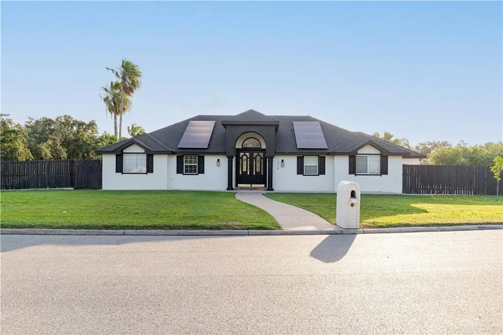 Welcome to this beautifully maintained 4-bedroom, 2.5-bathroom home offering 2,244 sq ft of comfortable living space on a generous half-acre corner lot. Located just across from Walmart in a highly convenient Weslaco neighborhood, this home is perfect for families or anyone seeking space, comfort, and privacy. Step inside to find a well-designed layout featuring spacious bedrooms, a large living area, and a bright kitchen perfect for entertaining. The covered patio offers a peaceful outdoor retreat, ideal for family gatherings or weekend BBQs. Additional highlights include: Electric gate for added privacy, 2-car garage, Solar panels (will be paid off at closing!), Security system for peace of mind Corner lot with plenty of yard space for gardening, a pool, or future expansion This move-in ready home combines space, style, and a location that can’t be beat. Don’t miss this opportunity to own in one of Weslaco’s most convenient areas!