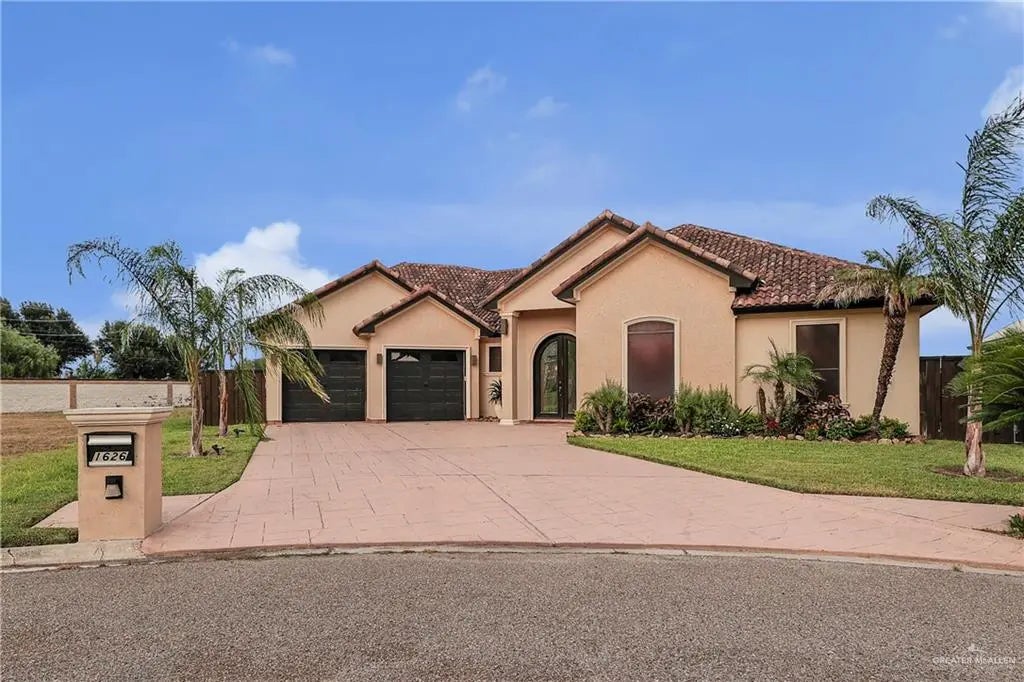 Welcome Home! Located in the highly desirable community of Tuscany Village, this stunning home offers 3 spacious bedrooms, 2.5 baths, private office, media room, and a generous living area. The gourmet kitchen features granite countertops, beautiful custom cabinetry, stainless steel appliances, and a custom backsplash. The home boasts soaring decorative ceilings, upscale lighting, and porcelain tile flooring throughout. The open floor plan is ideal for entertaining. The primary suite includes a spa-like ensuite bathroom with a relaxing soaking tub, double vanities, and two large walk-in closet. Two car garage offers tile flooring and level 2 EV charger. The covered patio overlooks a sparkling pool and expansive fenced backyard. Zoned to Sharyland ISD!!!