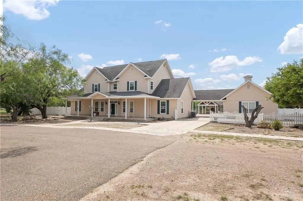 PRIVATE COUNTRY OASIS- This “MUST SEE” home sits on a sprawling 4.75 acres. Breezy mesquites and other Texas plants create an inviting entrance. A spacious front porch is ideal for that 1st cup of coffee! The large open concept, welcoming staircase, fireplace and the flow of natural light makes for a wonderful first floor design. The kitchen boasts a breathtaking view of the backyard oasis granite countertops, spectacular cabinet space, and an island with bar that seats 4. The breakfast nook has plenty of space for 6! The master includes lovely French doors that open up to the pool area for that evening cocktail or night swim. The 2nd floor has an open loft area perfect for a sitting/play area & 3 more bedrooms + a bath. This fabulous home includes a back wrap around porch, and the winding stone sidewalks lead to the pool/gazebo. The spacious outdoor living area is complete with a stone chimney, ideal for family gatherings. A detached 2 car garage, storage room & workshop are BONUSES!
