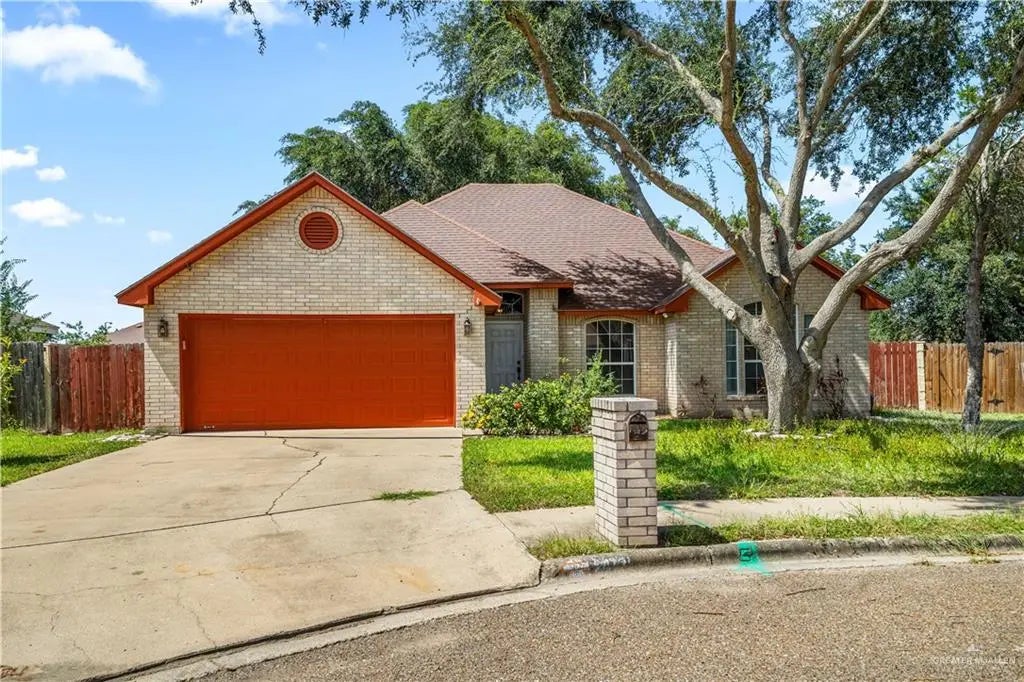 Welcome Home! This charming 3 bedroom, 2 bath brick home offers comfort, privacy, and a prime location in the highly sought after Sharyland school district. Inside you'll find a spacious living area, two dining areas, and a modern kitchen featuring granite countertops and stainless steel appliances. The primary suite leads into a double vanity, walk-in closet, private commode, shower/tub combo, with a French-Door entry bathroom. The fully fenced backyard offers no back neighbors and a mix of masonry and wood fencing for added privacy. Nestled in a quiet cul-de-sac just off of Shary Rd. Only minutes away from shopping, dining, and everyday conveniences. A perfect opportunity for first-time homebuyers looking for space, style, and a great school district!
