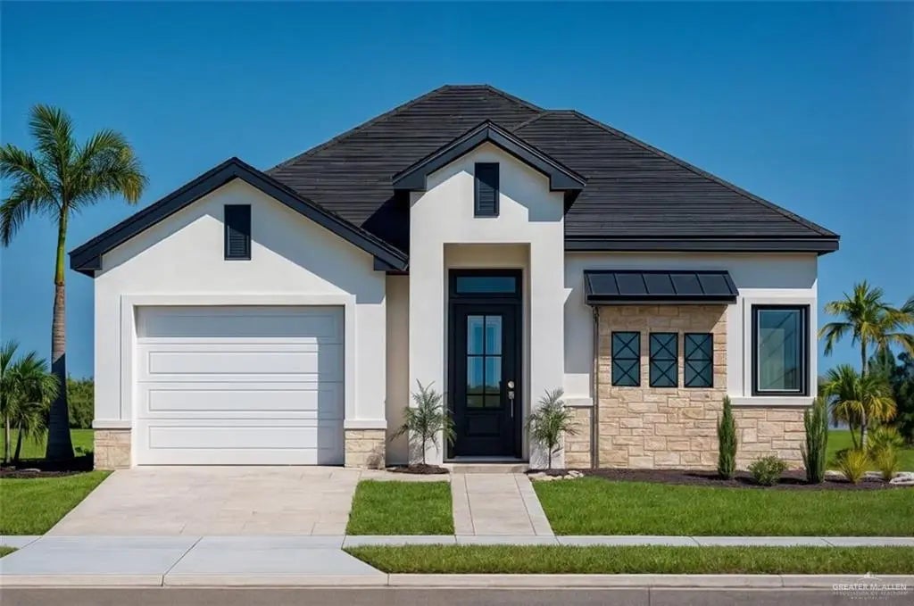 Exceptional new construction home in Edinburg, right off the expressway on Monte Cristo Rd! Featuring 3 bedrooms and 2 bathrooms, this residence showcases a bold modern design with a striking front entry and elegant stone accents with a sleek metal design on the windows for remarkable curb appeal. Inside, the open-concept layout blends style with functionality, highlighted by a spacious owner’s suite, comfortable secondary bedrooms, and abundant natural light from large windows. Modern finishes throughout add a touch of sophistication, while energy-efficient construction ensures comfort and savings. Additional features include an attached garage and a landscaped front yard. Conveniently located near schools, shopping, dining, and major roadways, this home offers contemporary elegance and everyday ease in one of Edinburg’s most desirable communities. Render is for reference only, estimated to be done at the end of November.