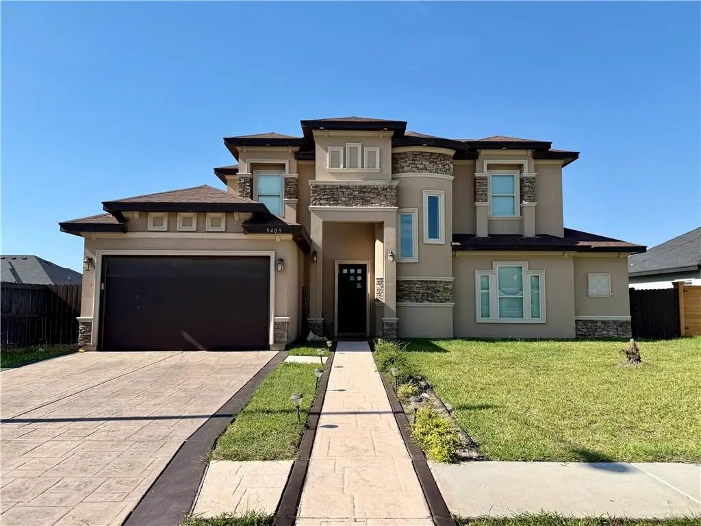 Step into luxury and comfort in this impeccably designed stucco-and-rock residence built in 2019, offering 2854.5 sqft of refined living space in a charming neighboorhood with sidewalks and streetlights. From the moment you arrive, you'll be welcomed by the paved walkway leading to the heavy wood entry door, setting the tone for the elegence within. Main Features: 4 Spacious bedrooms|3.5 Baths (including 2 first floor Master Suites with beautifully tiled showers), high decorative ceilings, recessed lighting, 2-seperate living rooms for versatile entertaining, open-concept kitchen featuring a large bartop with seating for six, walk-in pantry, double oven with microwave, cooktop stove, pull-out cabinetry for trash bin, granite counter tops in kitchen and bathrooms. Master bath retreat with double vanity sinks, make-up vanity, walk-in tiled shower, private commode and a walk-in closet with built-in drawers and shelving. 24" tile flooring downstairs and wood laminate upstairs (no carpet).