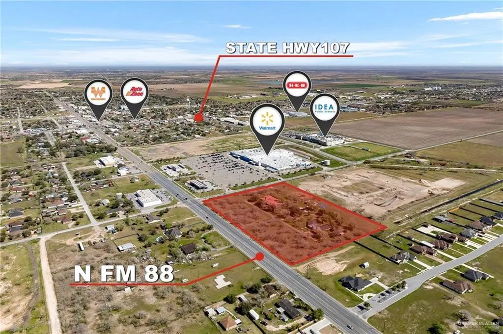 Nearly 10.00 acres of prime land, strategically located at the southeast corner of FM 88 and Mile 16. Traffic controlled intersection location across from Walmart Supercenter and Idea Academy. Campana at 88 subdivision is located on the south side of the property. Ideal for commercial development and an excellent location for national or regional credit tenant investment. Capitalize on the booming economic growth in the area that is attracting major investment. Excellent frontage along FM 88 that allows for ideal orientation/exposure for new development/construction.