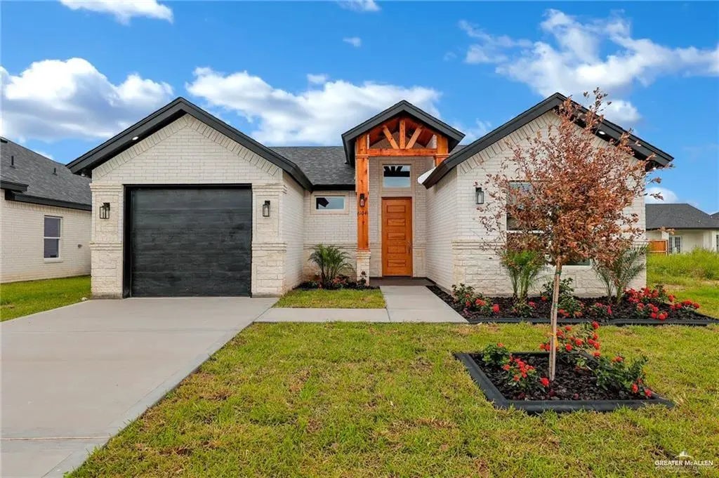 This stunning new construction home in the Sol Alegre subdivision of Edinburg offers modern comfort and convenience. Featuring 3 bedrooms and 2 bathrooms, the house showcases an attractive brick and stone exterior, giving it great curb appeal. Inside, you'll love the open concept layout that seamlessly connects the living and kitchen areas—perfect for entertaining. The kitchen is equipped with stunning quartz countertops, adding both elegance and durability. Step outside to a covered patio in the spacious backyard, ideal for outdoor BBQ and relaxation. Conveniently located near Expressway 281, this home provides easy access to shops, dining, and schools. Perfect for growing families or those seeking a comfortable, stylish space!